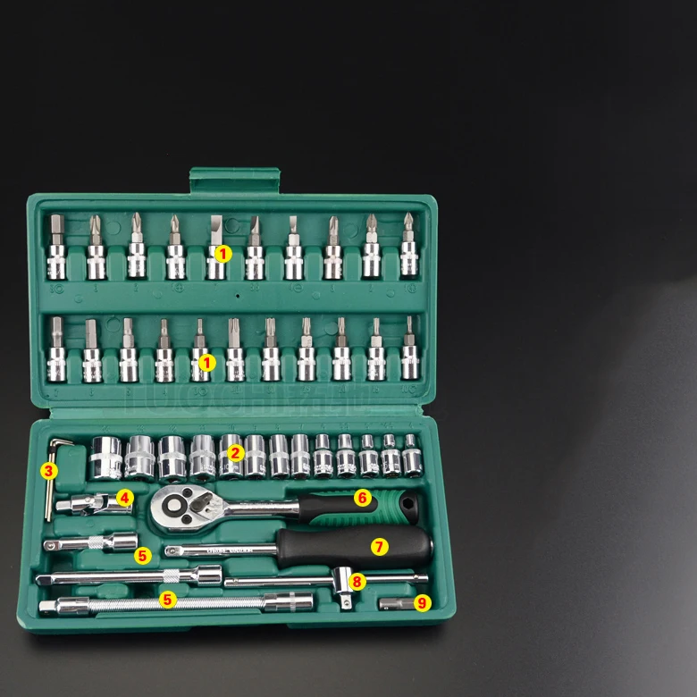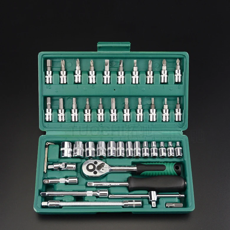 Best Seller 46 Pcs 1/4'' Auto Repairing Tool Set Socket Set Vehicle Maintenance Car Repair Ratchet Torque Wrenc